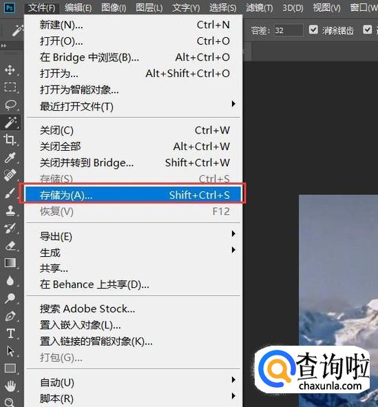 这里我们使用Photoshop软件来修改图片大小,使用Photoshop软件打开要修改的PNG图标,点击“文件-存储为”选项。