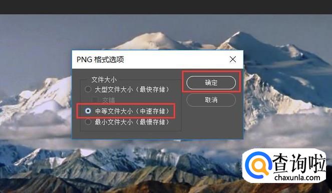 接下来,选择文件类型为“中等文件大小”按钮,并点击“确定”按钮。