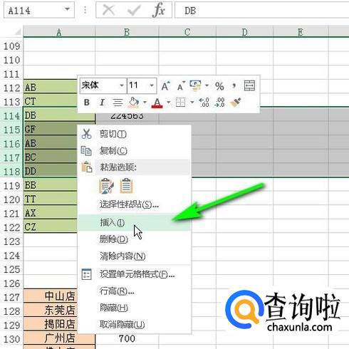 鼠标再右击,弹出菜单,再点:插入