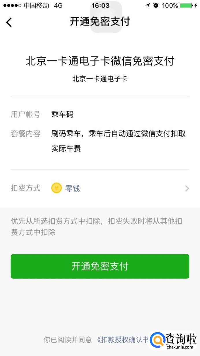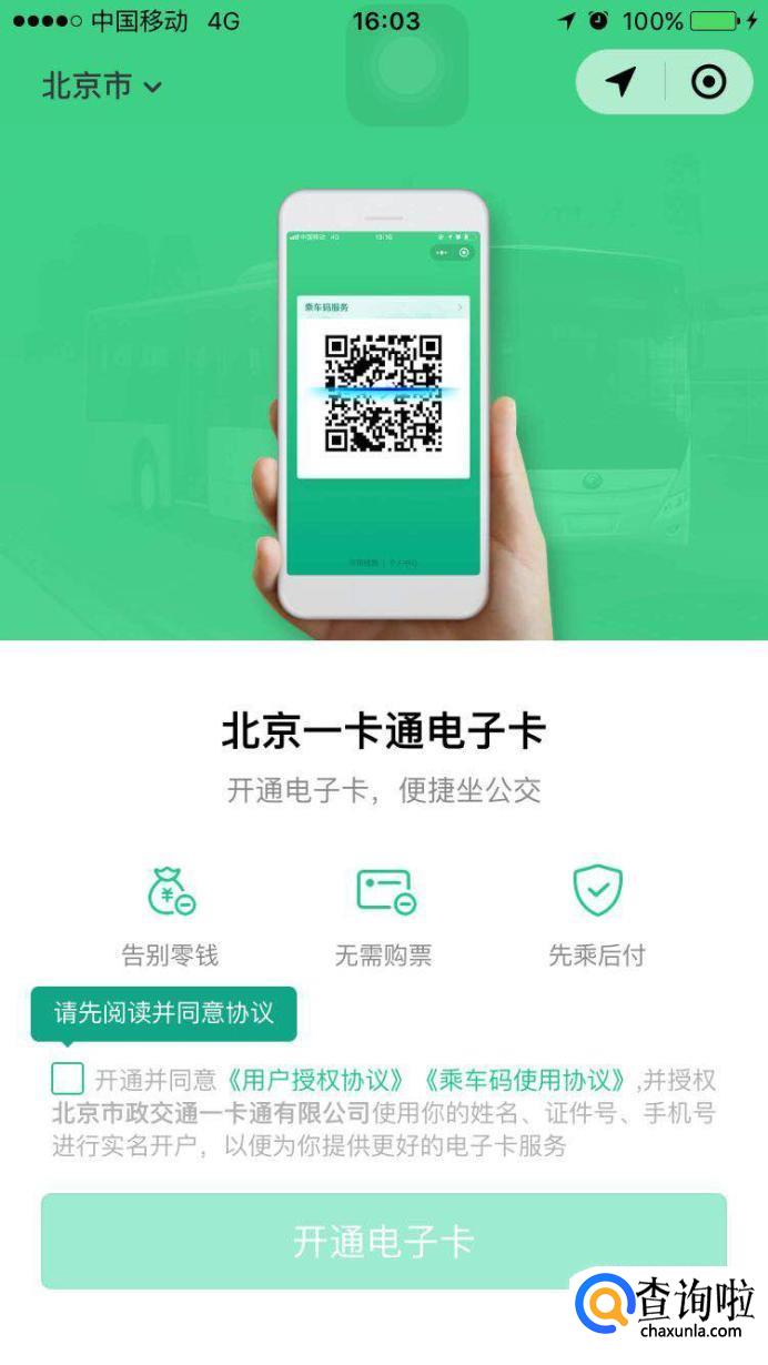 勾选下方的同意用户授权协议。点击“开通乘车码”。