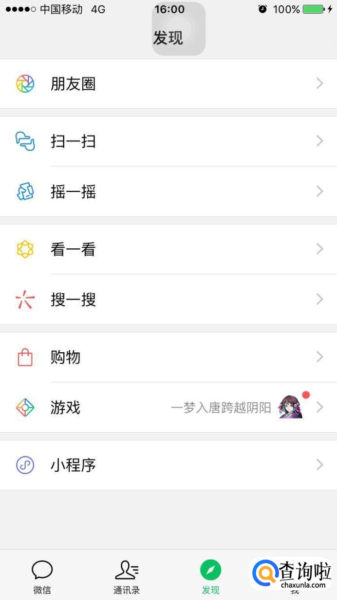 打开微信,在发现中找到小程序。