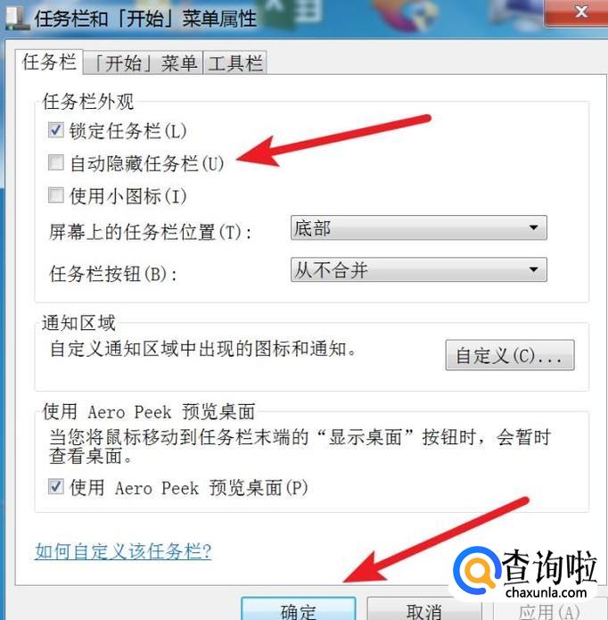 点击确定按钮后,我们的任务栏就会自动隐藏起来了。