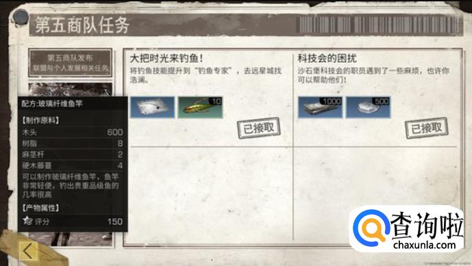 第二个条件是要完成“大把时光来钓鱼”这个任务。完成任务即可解锁图谱,再根据图谱所需配方获取材料;