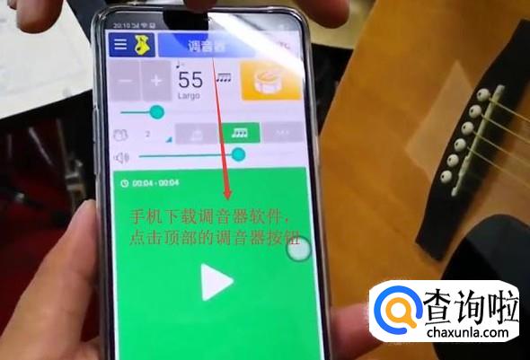 首先我们用手机下载一个调音器应用程序,点击顶部的调音器按钮,如下图所示