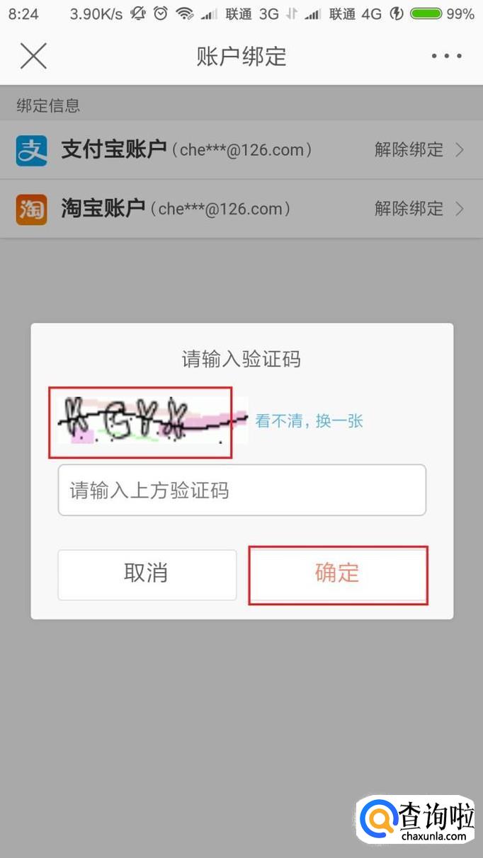 最后,我们在页面中输入验证码并点击“确定”按钮,然后即可成功将支付宝账户与微博账号解除绑定。
