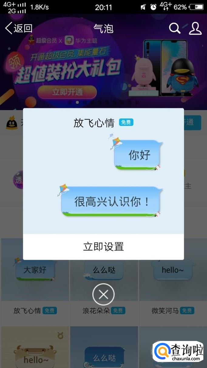 最后,找到自己喜欢的气泡,点击进入,再点击立即设置即可。
