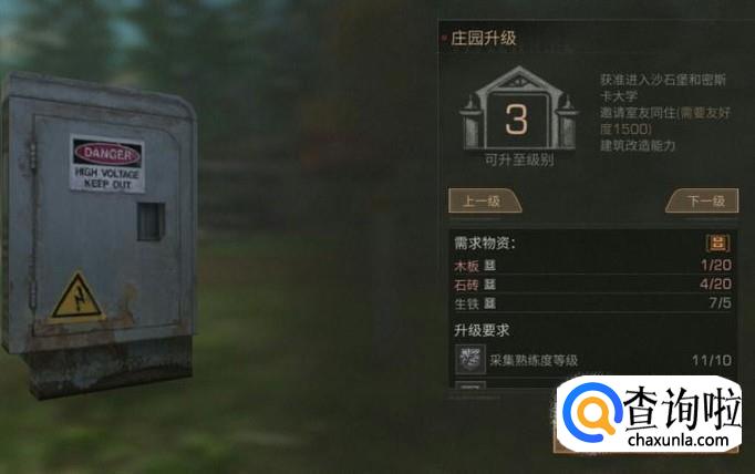 点击“升级”,就可以看到庄园升级要求,根据升级的要求去完成任务,就可以升级啦,升级是需要升级材料的,数目达到之后点击升级即可。