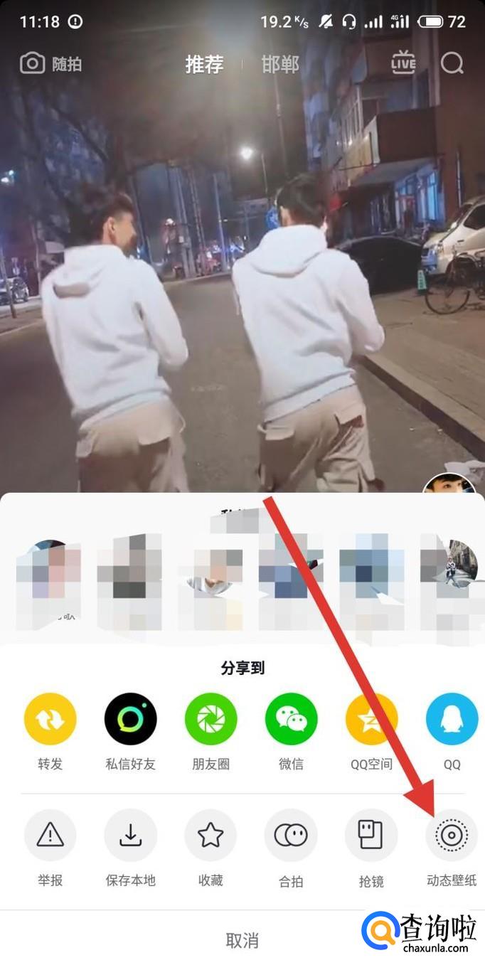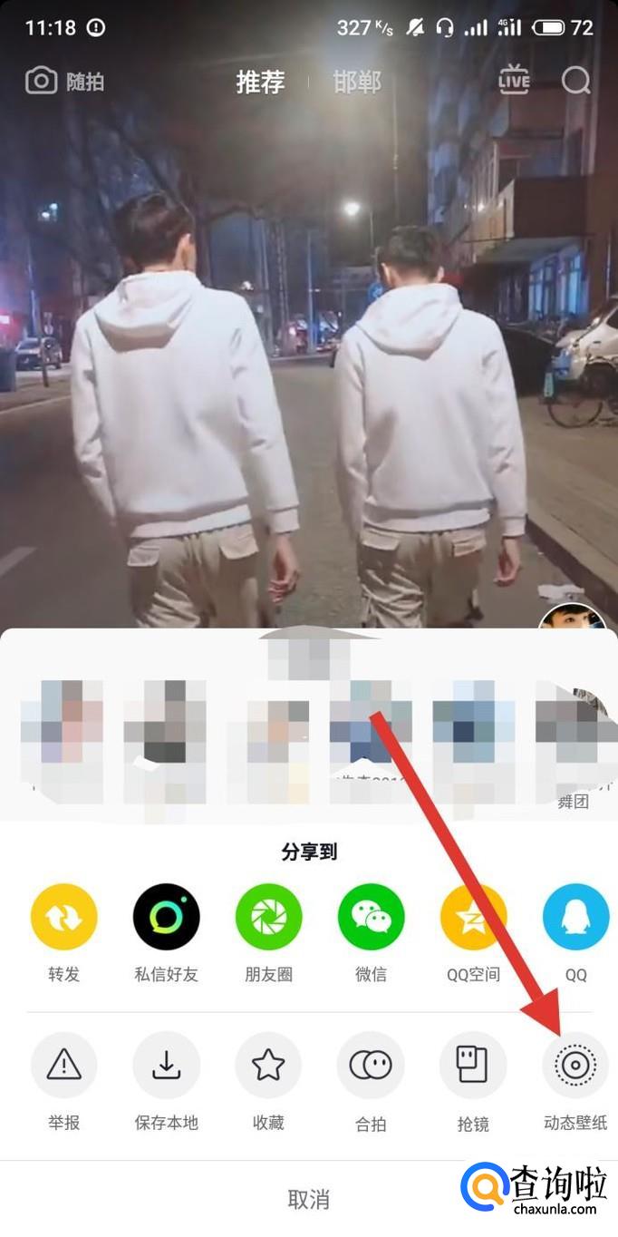 再次进入分享菜单,选择“动态壁纸”,如图所示。