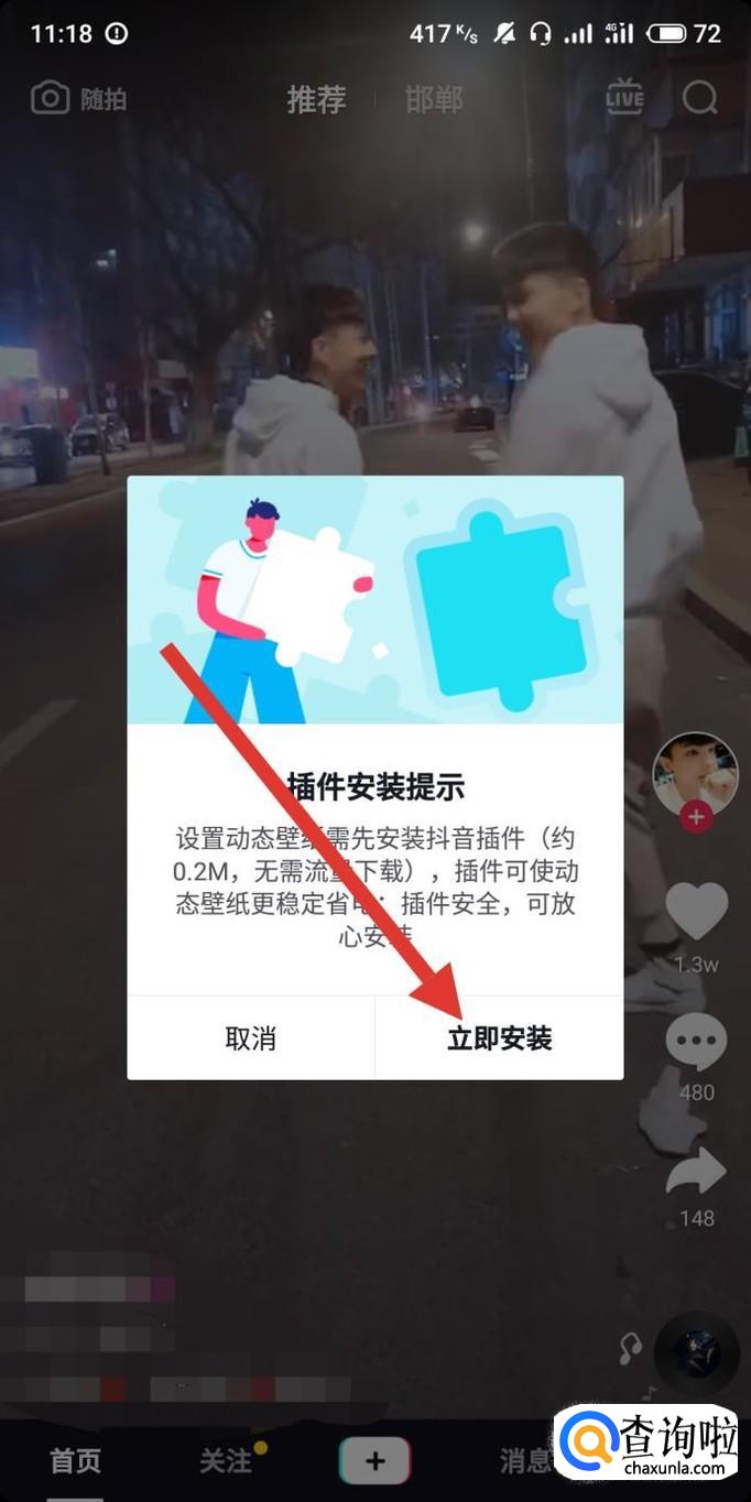 在出现的弹窗内选择“立即安装”,如图所示。