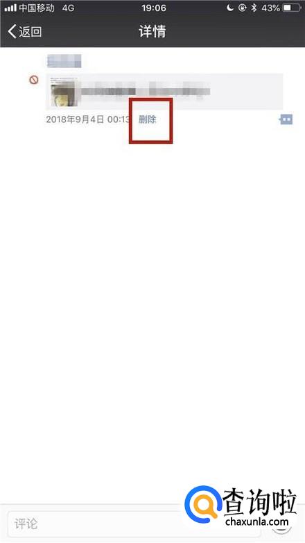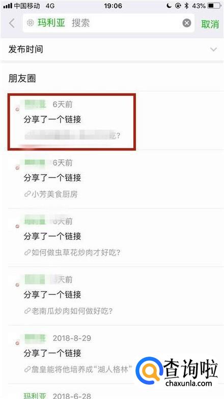 在这个界面我们可以查看到我们所有发过的朋友圈。选择一个要删除的微信朋友圈并点击它,如下图所示。
