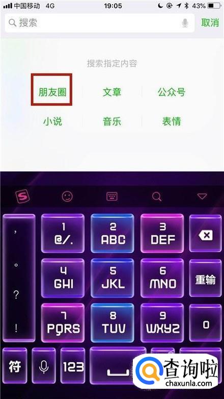 然后点击朋友圈,如下图所示。