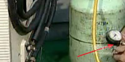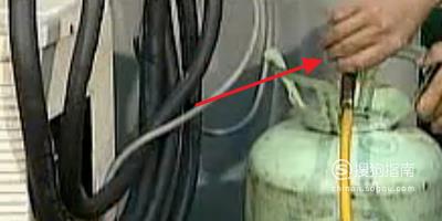 将表阀与空调、制冷剂罐连接。空调合电开机,并打开制冷剂罐阀门。