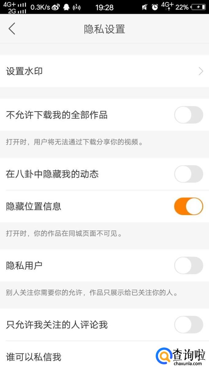 最后,我们在跳出来的选项中将隐藏位置信息点击开启即可。