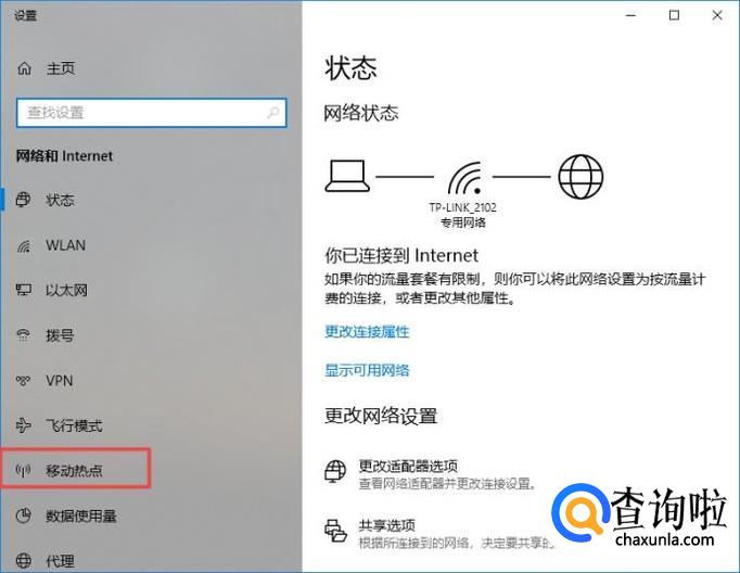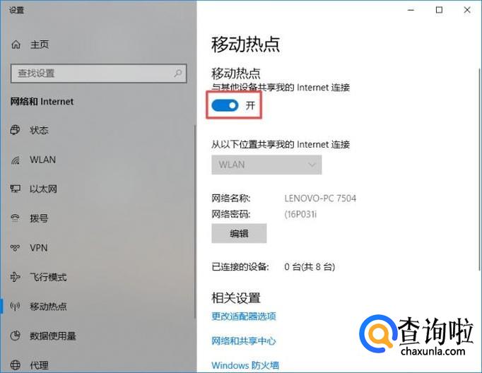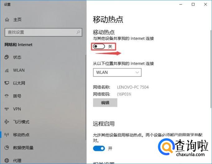 之后我们将移动热点的开关向右滑动打开,这样我们就开启了wifi了。