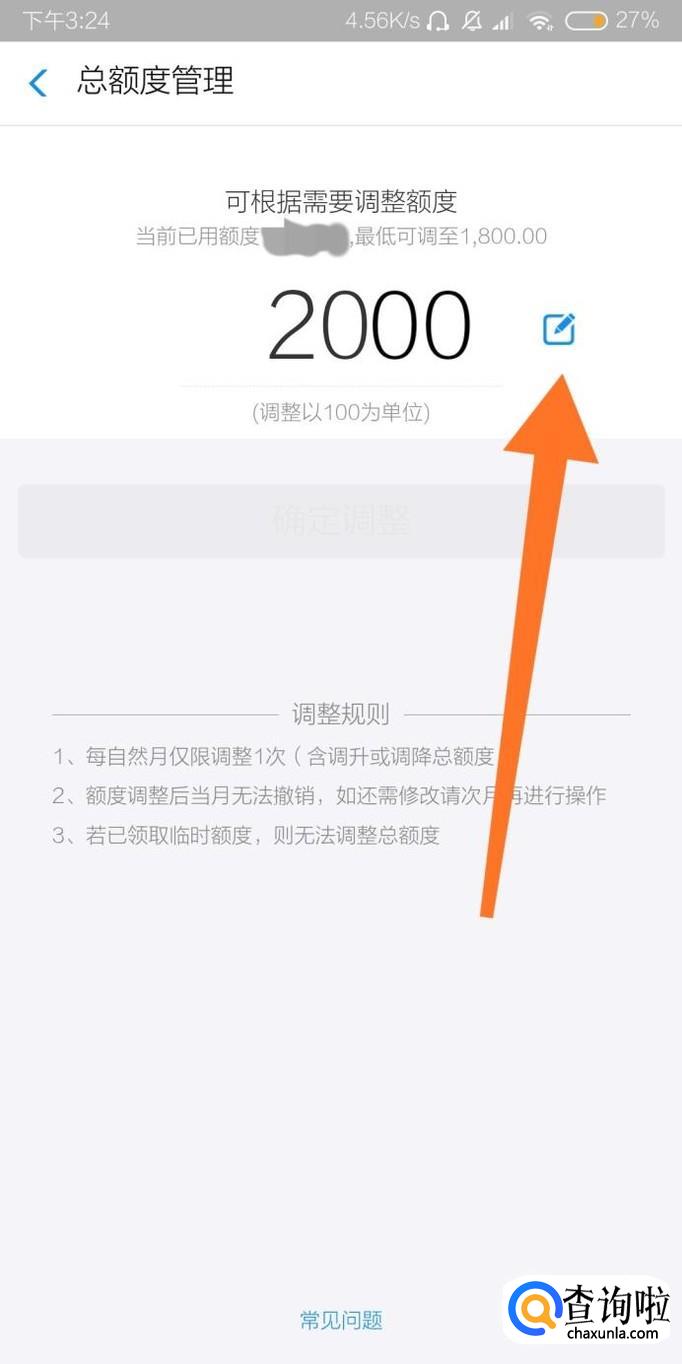 接着点击花呗额度右边的笔即可修改花呗额度。