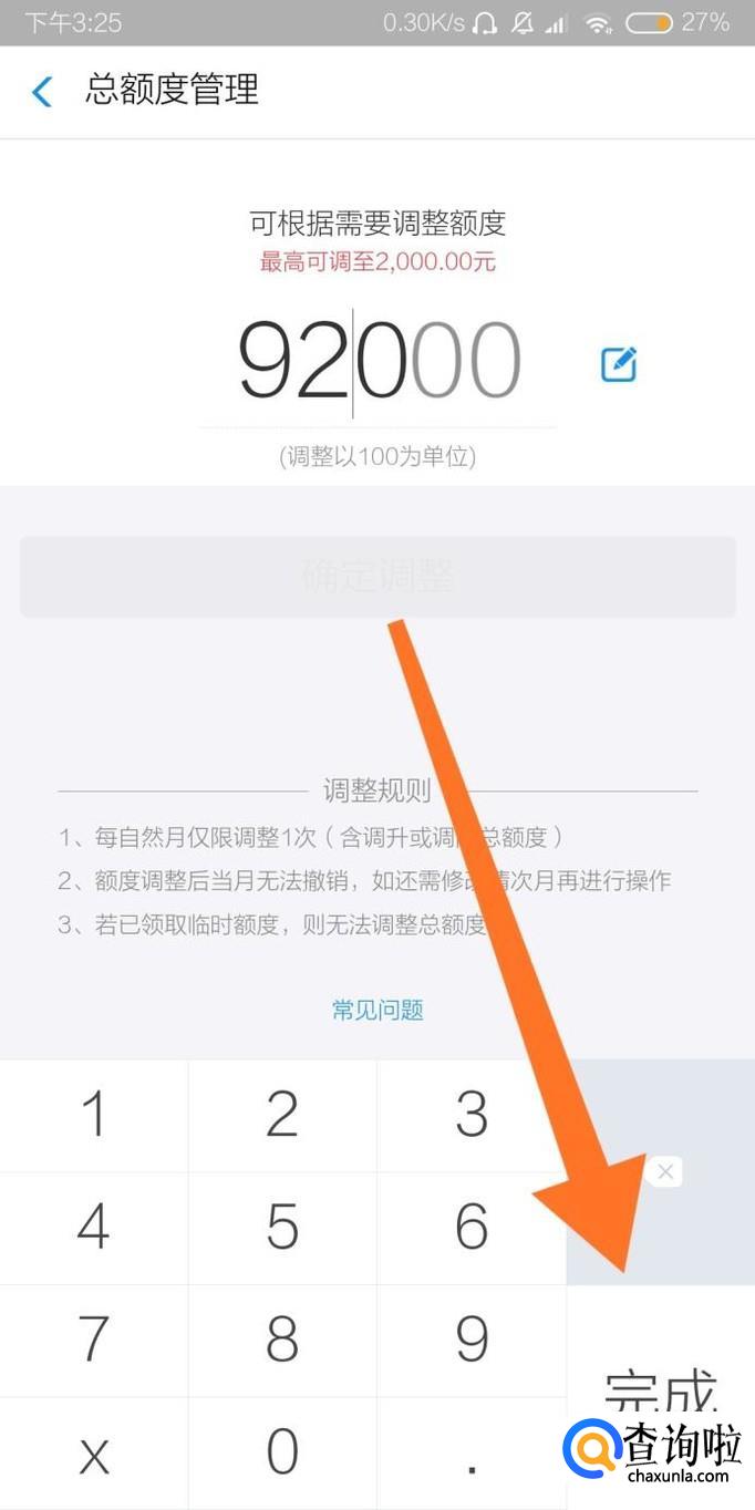 按照提示修改好额度后,最后点击“完成”按钮即可。