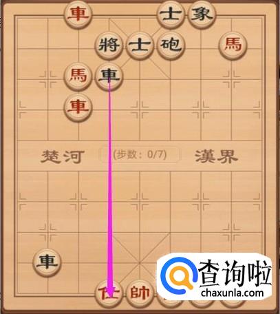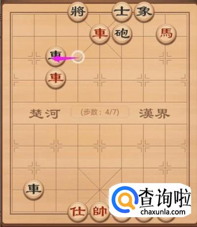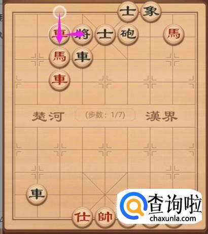 我们先来走第一局,这个当然是红方先走啦,红方第一手先车退一步,对黑方形成将军,如图所示。