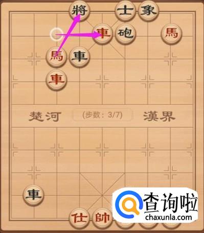 接着我们来进行第三局,这一局红方车右走一步,再次对黑方形成将军,如图所示。