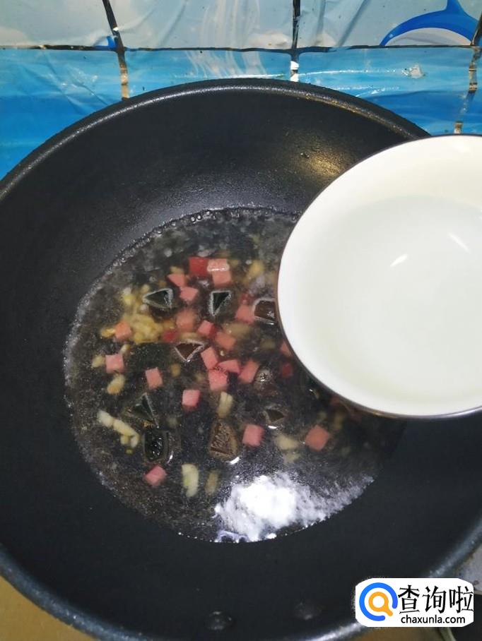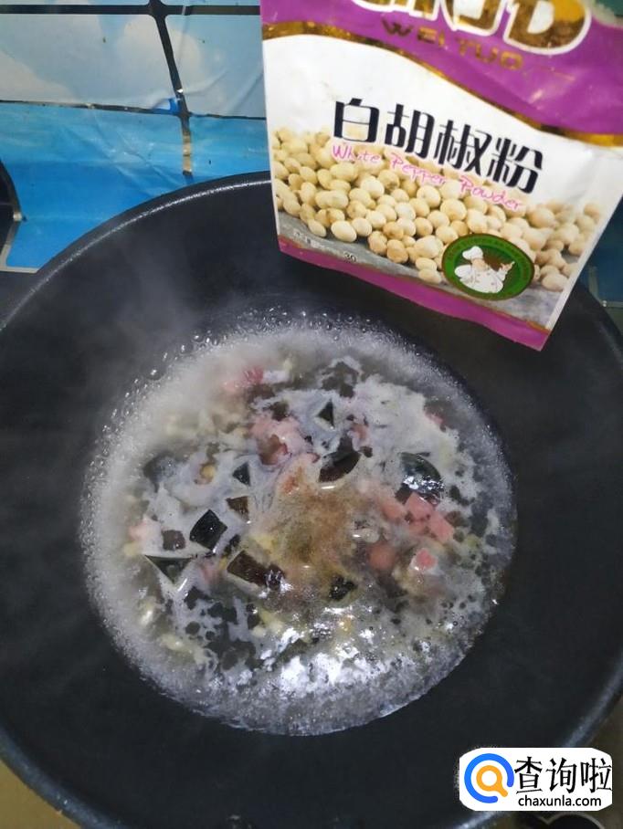 加入一碗清水,然后再加入适量食盐和白胡椒粉调味,盖上锅盖,煮三分钟左右。