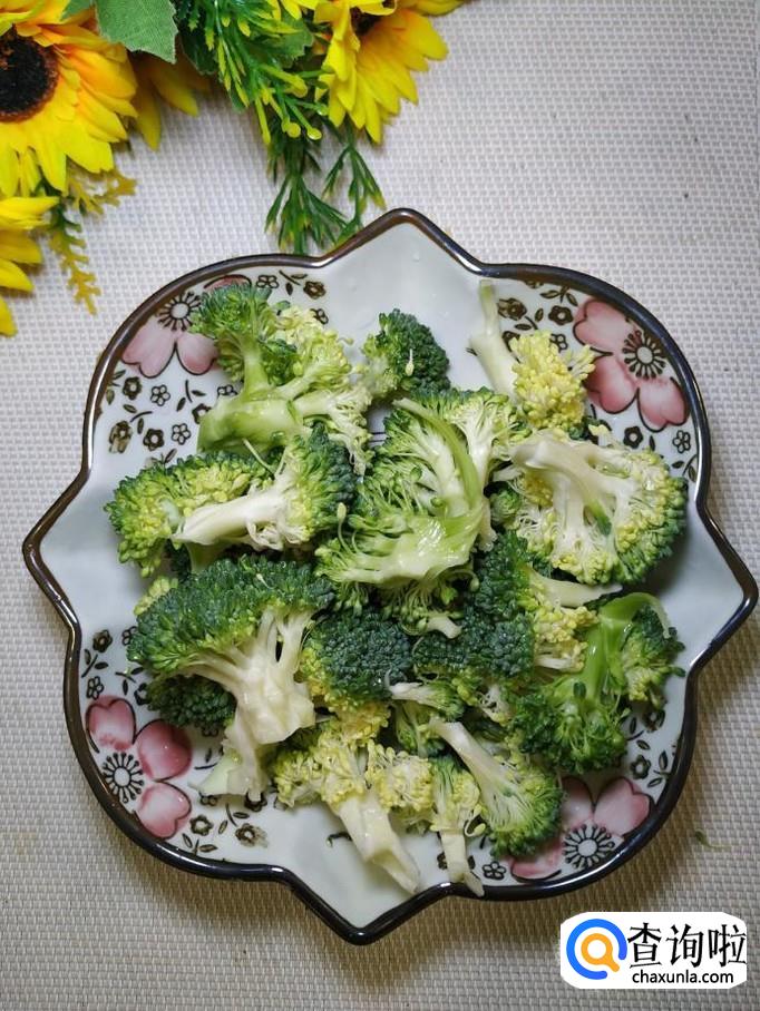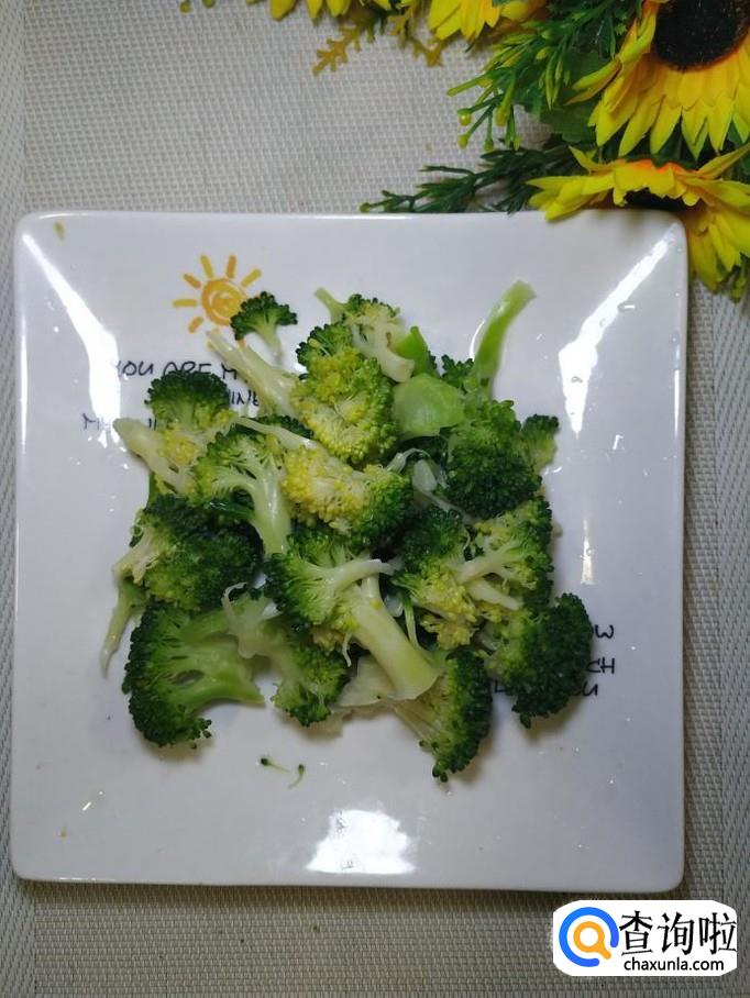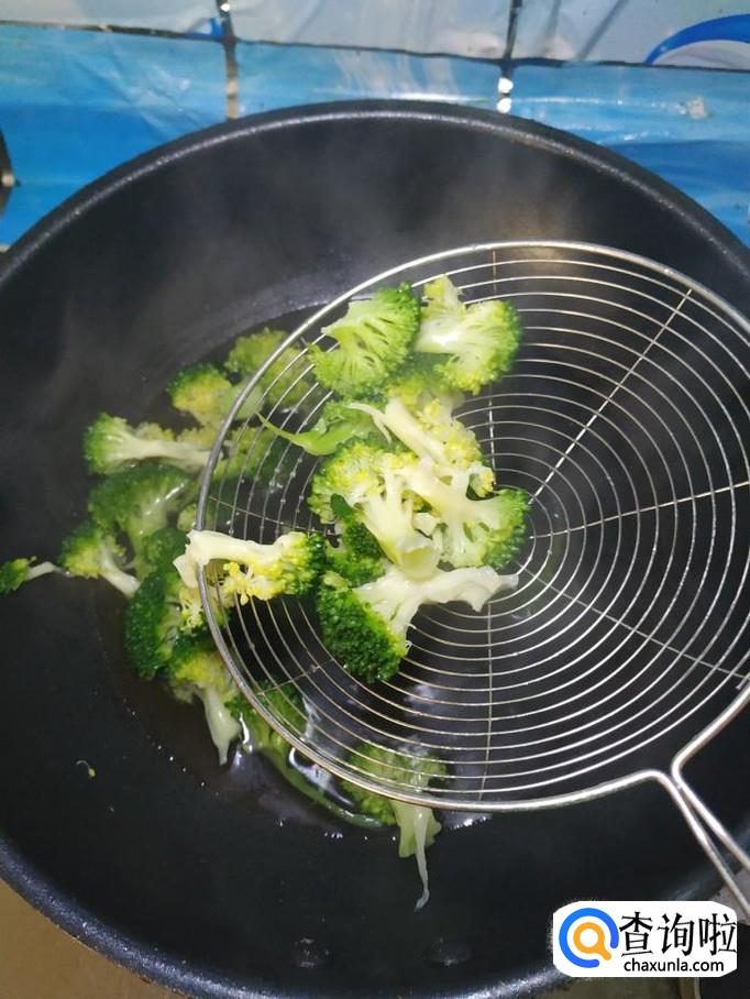 锅中烧开水,加入适量盐和食用油,将西兰花放入锅中焯水,炒好之后盛出,控干水分。