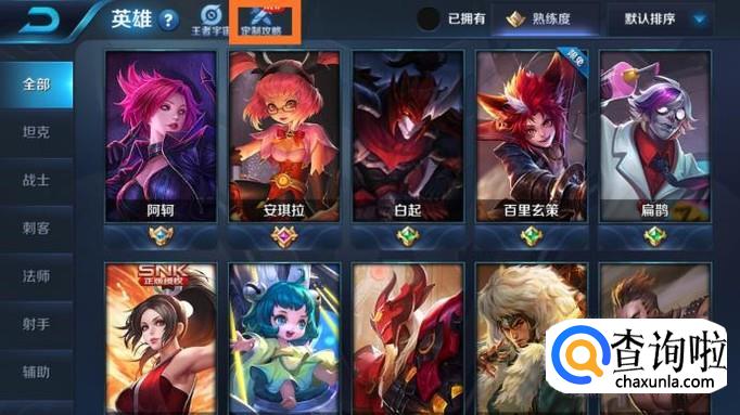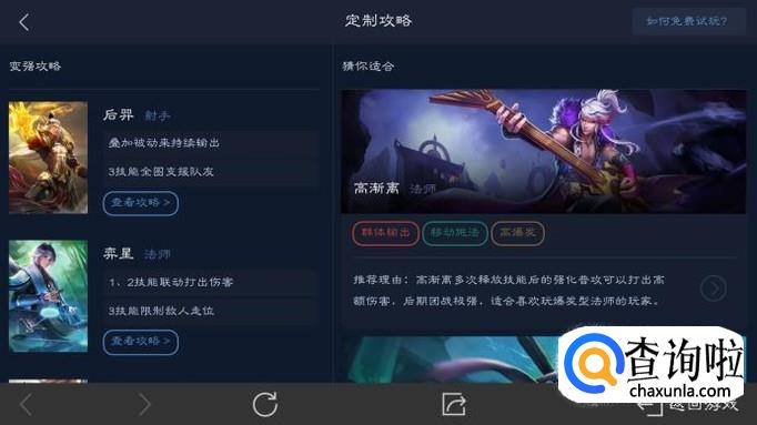 点击左下角的"英雄",然后在之后的页面里面点击左上角的"定制攻略"。
