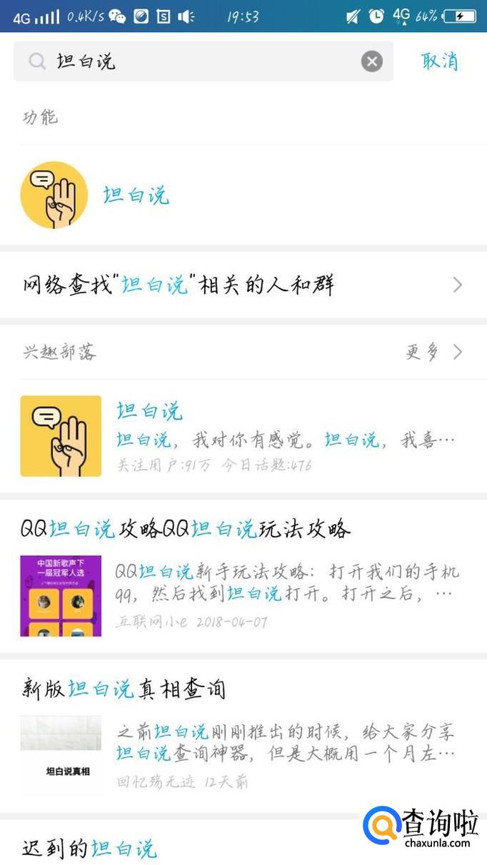 点击搜索框,在搜索框中输入坦白说,如图1所示。点击坦白说,会出现一个新的界面,如图2所示。