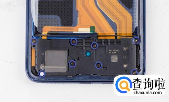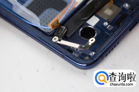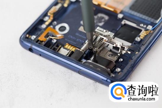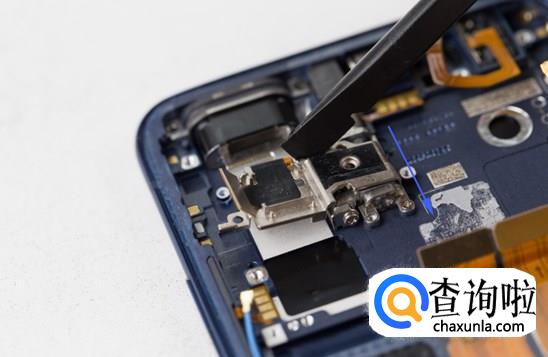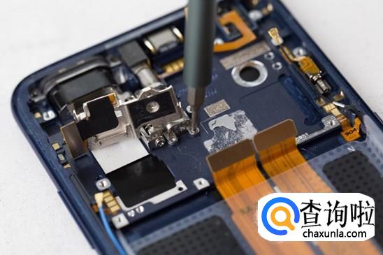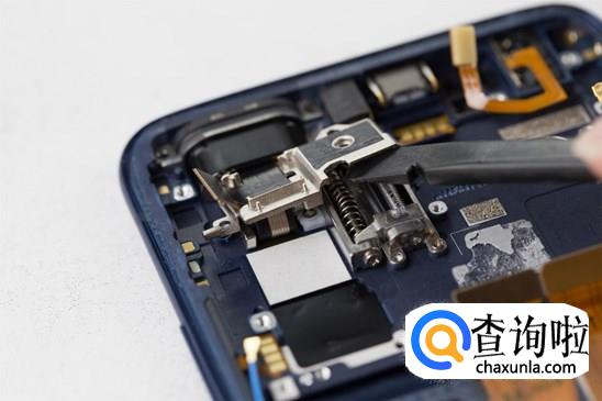 vivo X27的尾插也有塑料挡板,将图中所示的8颗螺丝卸下。