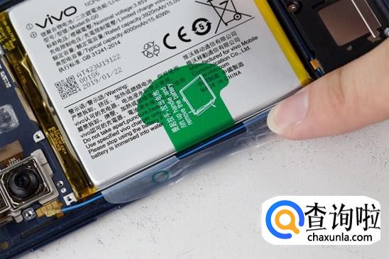vivo X27的电池分离非常简单,先把透明C层拉起、压到另外一侧。