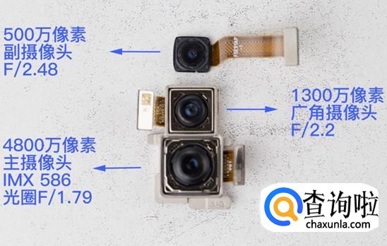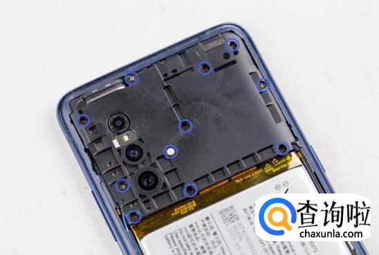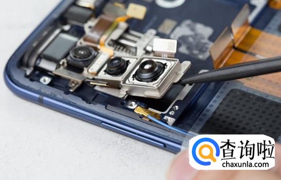 先拆vivo X27后置三摄,可以看到做工细节上非常不错,主摄和超广角摄像头为一个模块,都使用金属框进行固定。