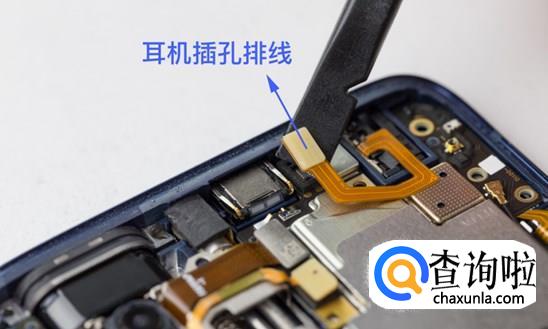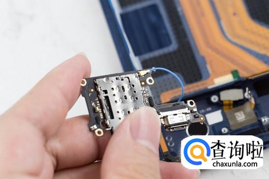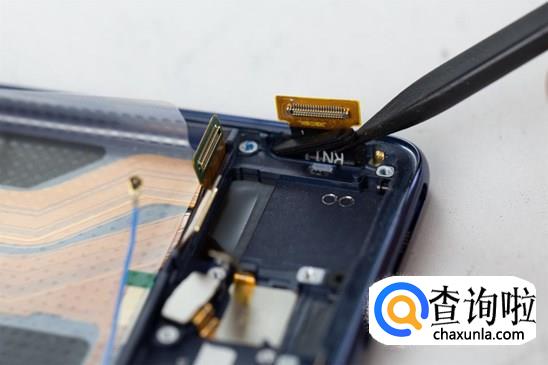 尾插背面还有一条蓝色的同轴线,也得撬起取下。还要撬起另外一个尾插小板。