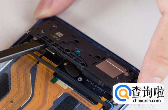 拆除了显示屏之后,用撬棒从侧边,顶出屏幕指纹副板。