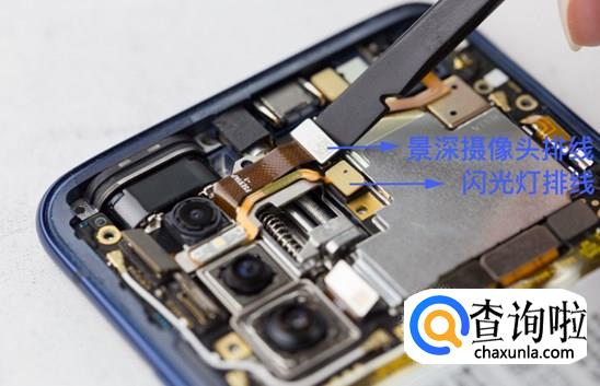 接着还要取下前置摄像头排线、广角摄像头排线以及主摄像头排线。