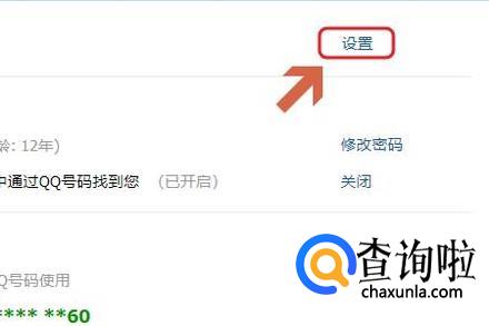 不过系统是不允许关闭主显账号的查找功能的,我们需要点击此页面主显账号后面的“设置”;