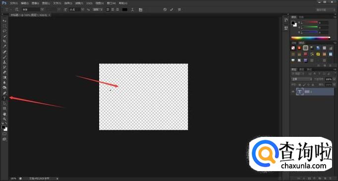 完成新建后,我们可以看到此时画布为透明背景,在左侧工具栏中,选择“文字”工具,在画布上输入水印内容。