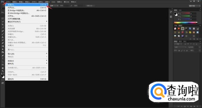 首先,我们开启PS,在窗口上方的菜单选项中,点击“文件”,在弹出的子菜单中点击“新建”。