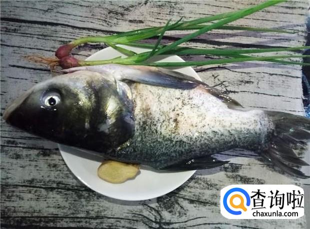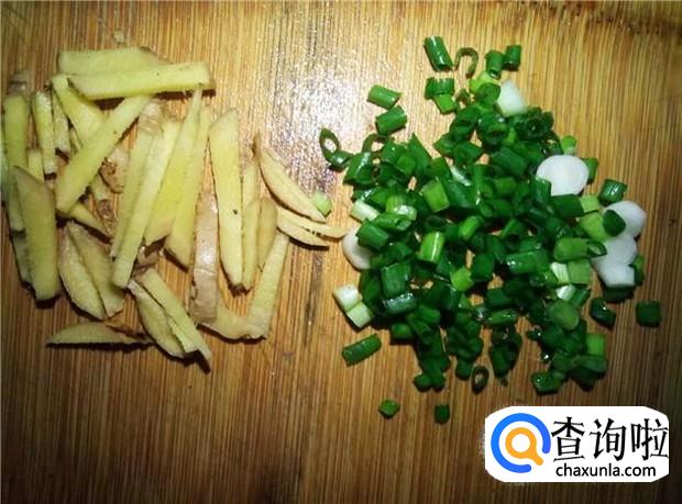 准备好所有原材料:大头鱼一条、香葱一根、老姜适量。