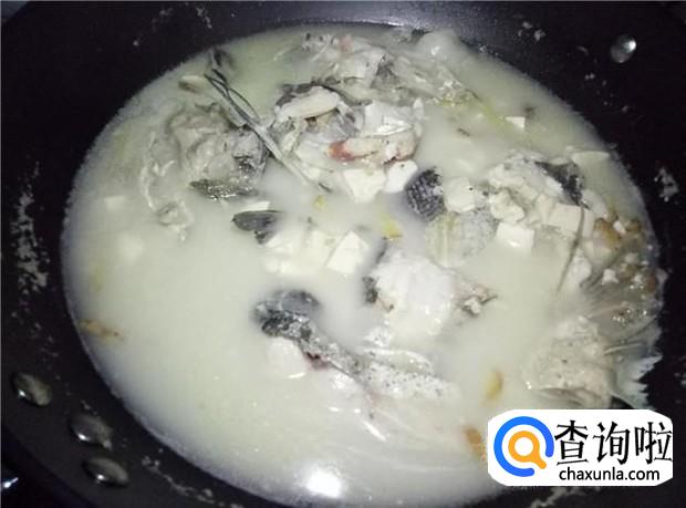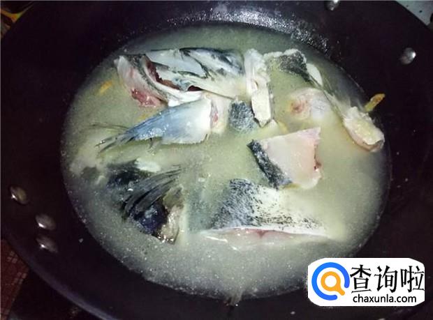 最好可以加入煮好的开水,这样鱼汤会变得更加奶白。