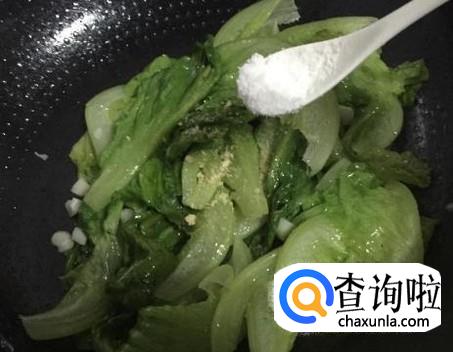 生菜炒得稍微有点软时,往锅中加入适量的盐调味,翻炒几下,就可以出锅了。