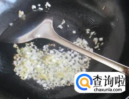 锅里放入食用油,油热后,将蒜末倒入锅中,炒香。