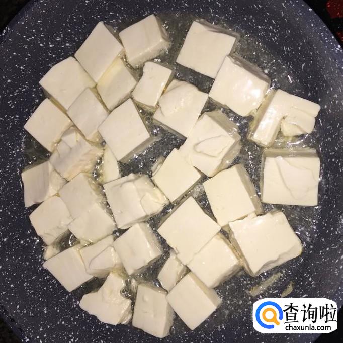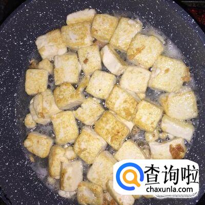 如果锅会粘锅,就建议油多下一些,甚至更多,将豆腐用炸的也行,炸到表面金黄;