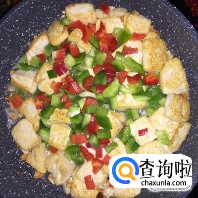 材料:鸡蛋 青椒 红椒 豆腐 生抽 蒜头 蚝油 盐 鸡精 食用油