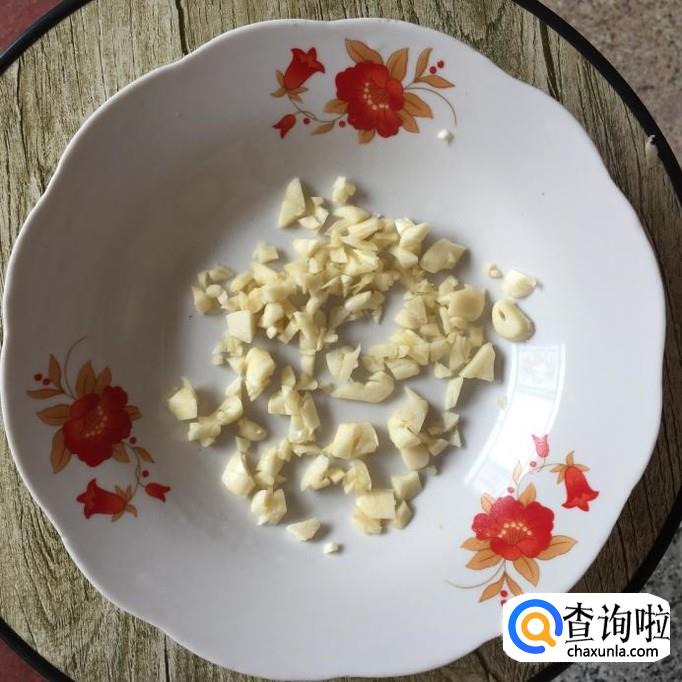 取六七个蒜头,将蒜头的外膜去掉,洗净后,剁碎;
