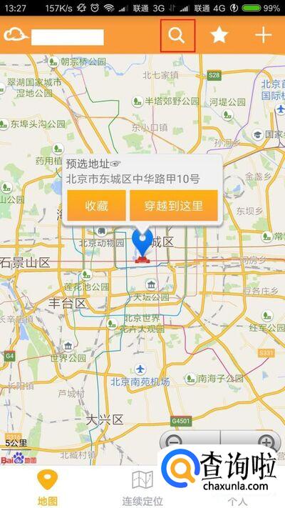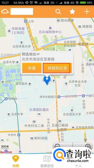 然后我们就会看到“穿越到这里”功能按钮,点击该按钮即可实现穿越功能,位置信息即可被成功模拟。