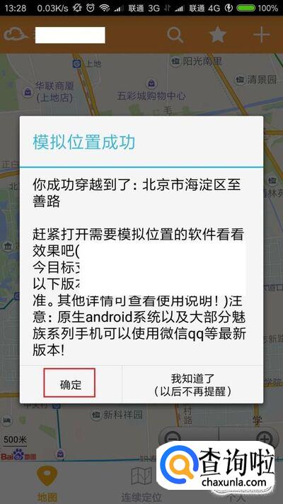 然后在软件主页面中即可看到消息提示,应用提示我们位置信息已经被模拟成功了。