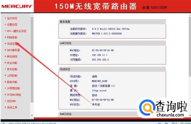 进入路由器之后点击下面的无线设置进入无线设置界面
