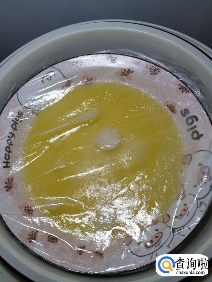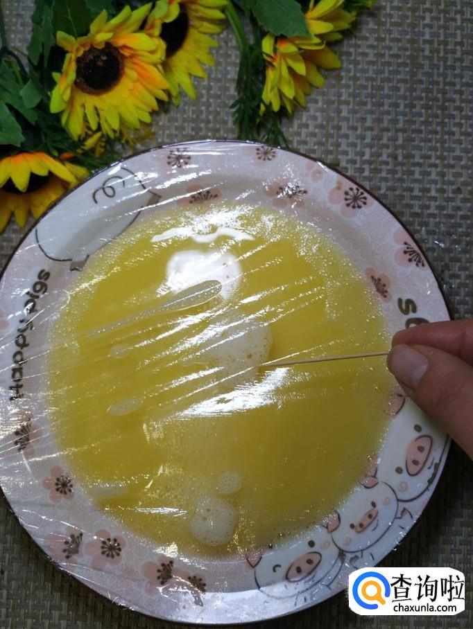 盖上一层保鲜膜,然后用牙签戳几个小洞,这样方便蒸汽从小洞里出来。然后将鸡蛋羹放入蒸锅,水开后先蒸五分钟左右。