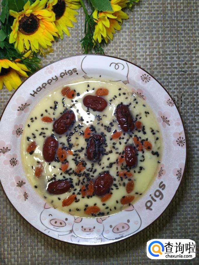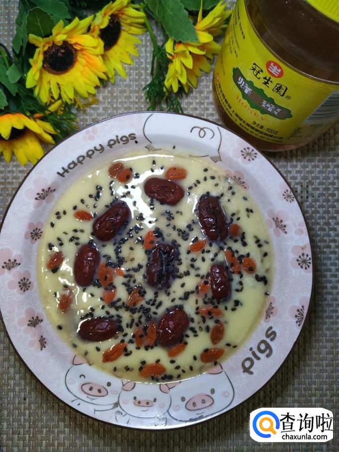 鸡蛋适量,白砂糖适量,红枣适量,枸杞子适量,蜂蜜适量,黑芝麻适量。