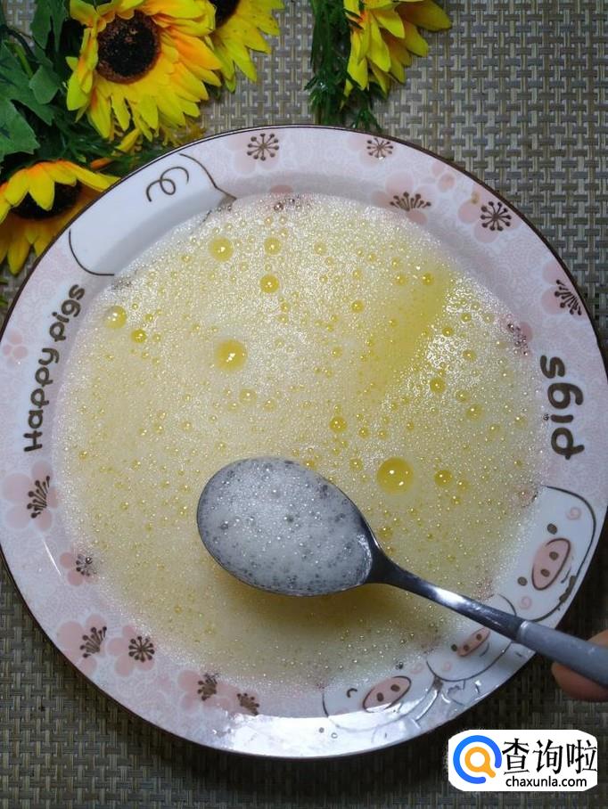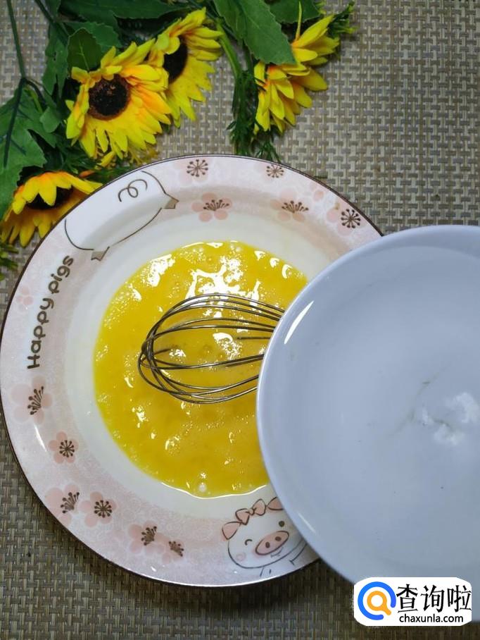 加入比鸡蛋多一些的清水,用打蛋器继续打散。