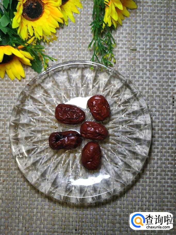 准备适量红枣,切成片放入盘中。
