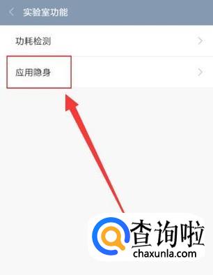 进入“实验室功能”,点击“应用隐身”,如图所示。